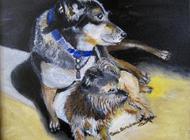 Jenny in watercolor, Happy and Scruffy in oil along with their sister, Becky Ann in oil on canvas